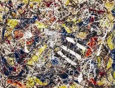 美国抽象表现主义大师杰克森·波洛克是20世纪最有影响力的艺术家之一,他创造了在帆布上随意地泼溅颜料、洒出流线的技法,画板上滴满稠密的棕黄色、白色、栗色和黑色颜料,形成了鸟巢状的外观,看起来有些杂乱无章。他的滴洒法绘画在随意之间隐藏着戏剧性的偶然效果,激情四射而且充满了色彩的自由、张力和狂野。他作品具有难以忘怀的自然品质,融合了抽象主义、表达主义和超现实主义的特点。