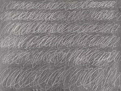 汤伯利擅长结合油画和素描,涂鸦般的恣意奔放却展现出优雅,和大部分抽象派画家狂野的风格不同,他笔下将日常或是自然的事物画成简单线条,却能捕捉神韵,因为深受欧洲历史和古典神秘主义的影响,他的笔触率性、本能而且主观。