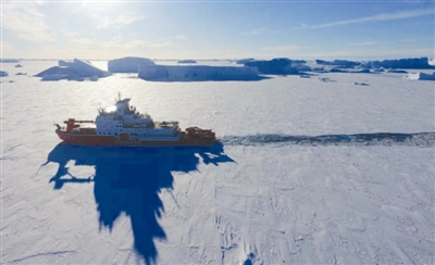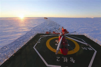 “雪龙2”号极地科考破冰船北京时间11月23日凌晨1时30分完成南极中山站附近的航道破冰,以连续破冰和冲撞破冰的方式,为“雪龙”号海冰卸货开辟了一段约14海里的冰上航道。“雪龙”号沿着这段冰上航道,到达更靠近中山站的预定卸货点,冰面雪地车运输和空中直升机吊运等南极冰上联合卸货全面展开。