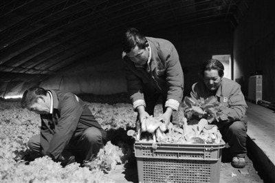 11月29日,位于新疆天山南麓、塔克拉玛干沙漠北缘的西北油田雅克拉采气厂工作人员,正在温室大棚里收割生菜、油麦菜、豆角、黄瓜等多个品种蔬菜。今年该厂投资建起了1200余平方米的温室大棚,改善了职工生活条件。 朱放宁 刘纯 摄