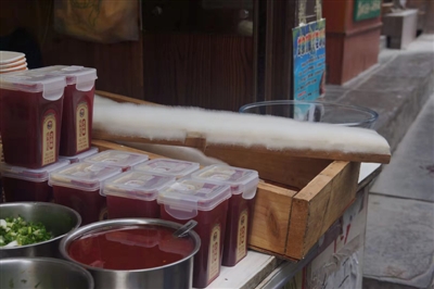 | 贵州千户苗寨卖毛豆腐的小吃摊。金波 摄 |