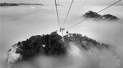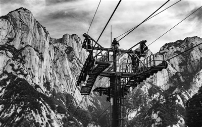 华山自古就被称为“奇险天下第一山”。建在华山西峰下的太华索道于2013年4月1日对外投入运营,全长4211米,以直上直下的“W”起伏式走向,沿途跨越四道深谷、三座山峰,最高落差达894米,其悬空之势,如天空之梯。坐在近乎全透明的索道吊厢之中,以飞鸟的姿态,俯瞰华山绝壁天险,这条华山“天路”给游客带来惊险独特的体验。
