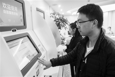 12月12日,在位于上海虹桥世界中心的嘉善政务服务分中心,人们在“自助通办”终端前办理业务。