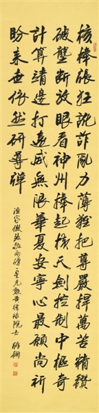 核棒张狂讹诈乱,力薄难把尊严捍。万苦精鉆破垄断,放眼看,神州捧起横天剑。控制中枢奇计算,靖边打远威无限。华夏安宁心最愿,尚祈盼,来世依然研导弹。