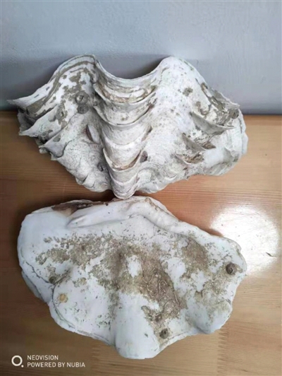 第四砗磲。海洋贝壳中最大者,直径可达2米,被称为“贝王”。分布于印度洋和西太平洋的一类大型海产双壳类,生活在热带海域的珊瑚礁环境中。有资料介绍,砗磲的白度为10,是世界上最白的物质。砗磲以坚硬的足丝固着在珊瑚礁上,依靠海水把浮游生物带进体内,作为食物诮化吸收,是贝类中最长寿者。砗磲也被世界公认为是稀有的有机宝石,被佛家尊为八宝之一。我收藏的砗磲壳,长14.5厘米,扇幅长20厘米,是库氏砗磲种,灰白色,外壳表面有5道呈放射状的沟槽。上下两扇壳一样大,壳比较单薄,但弯曲度较大。它外面还附着有几枚小螺壳。