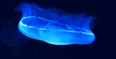 | 上图:正在游动的海月水母。 (图片来自:YouTube) 下图:海月水母。(图片来自:李倦辉、水母小厦) |
