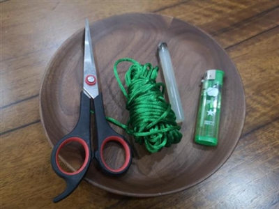 其他材料包括剪刀、打火机、热熔胶棒,绳子。
