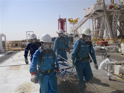| 图为沙特公司SINO-10队疫情期间做好风险防范生产HSE |