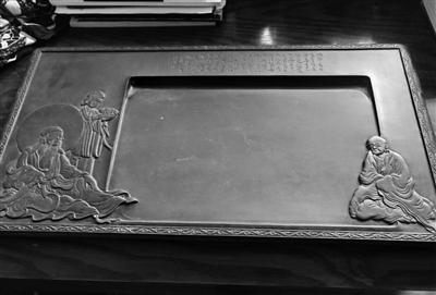 我们通过分析认为,从砚台的自然包浆分辨,也属有年代感的老文房用品。砚主应是信奉佛教的文人居士,或宗教机构的书房摆件。因为砚台个体太大,难于随身携带。专业人士认为:这方砚台有很高的价值。一是砚体材质,端砚下墨快,发墨好,通体无瑕疵,是一件佳品。二是砚铭具有文化价值,所刻图画、佛教经典交相辉映,相得益彰,再次提升了砚的价值。