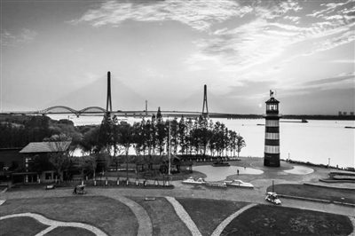 用河西新城管委会副主任蔡国峻的话说,几年前,这里还是“临江不见江,邻水不亲水”。长江经济带河西段原址多为防护堤、采砂场、油库,是沿江工业遗迹。“我们在环境整治过程中,将油船接驳栈道改造成观江平台,完整保留了湿地原貌,在湿地丛林中划分区域,建设了步行栈道,使游客既可以近距离观赏湿地,又避免了因人流进入对湿地生态可能造成的影响。同时对湿地河道进行了疏浚,补植了富有层次感的水生植物。”蔡国峻说。