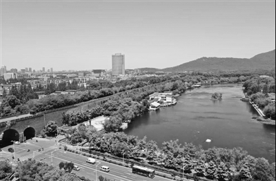 沿江进入南京主城区,外秦淮河、金川河宝塔桥断面、月牙湖消黑除臭、重现碧波……
