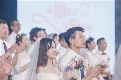 6月6日,来自北京、武汉、广州等地的30对新人在海南博鳌乐城国际医疗旅游先行区参加了一场集体婚礼。参加婚礼的部分新人此前因参加湖北的抗疫工作而推迟了婚期。
