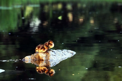 今年6月,随着新冠肺炎疫情级别的降低,清晨来北京玉渊潭晨练的人们和游客也开始增多。正赶上鸟儿孵化出巢时节,因此,经常会有各种鸟儿出没在公园的绿色树木和清澈的水中。