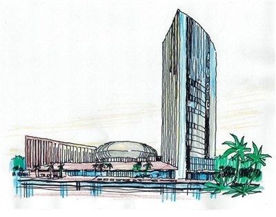 主持设计这座大厦的同济大学建筑师任力之去过埃塞俄比亚很多次。造型多变、有玻璃幕墙的百米高楼非盟会议中心矗立在这个环境中,远远望去,如停驻在亚的斯亚贝巴上空的一艘巨型太空船。