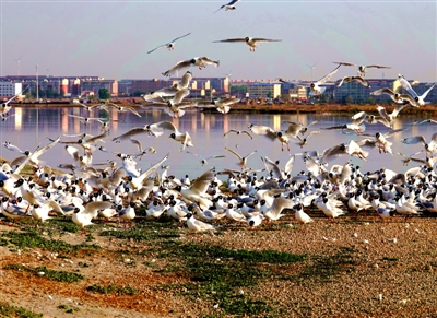 遗鸥,学名Larus relictus,鸥科鸥属濒危候鸟,中型水禽,体长为40厘米左右。繁殖地集中在蒙古国、哈萨克斯坦、俄罗斯和中国,其越冬地在中国和韩国亦有发现。目前全球只有1.2万只,在我国属国家一级重点保护野生动物。每年4月至9月,遗鸥成群结队,来到张家口市康保繁衍后代。