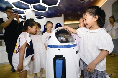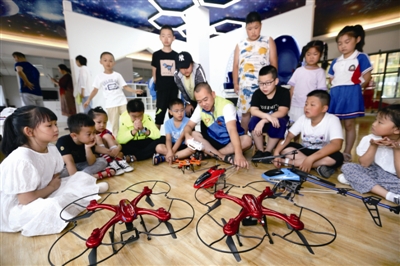 暑假期间,山东省青岛市即墨区环秀街道滨湖社区科普馆里的VR体验、3D打印、机器人、无人机等多个项目吸引了社区少年儿童参与体验,孩子们在互动中感知科技魅力,拓宽学习视野。