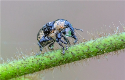本期与读者分享的作品为摄影师赵永清于2019年6月在浙江省安吉龙王山,用摄影器材(佳能5D3+180微距镜头+1.4增倍镜)记录了象鼻虫一秒吸水、满身露珠的蝉,以及“络腮胡”食虫虻的精彩瞬间。