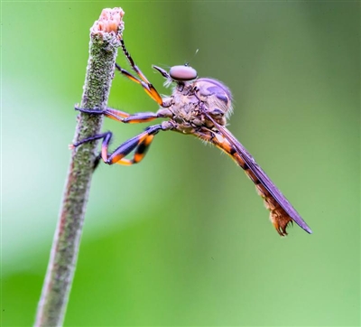 这种昆虫学名叫中华单羽食虫虻,又称中华盗虻,是我国最常见的食虫虻之一,在昆虫分类学上,食虫虻属于双翅目食虫虻科,和我们熟知的蚊子苍蝇是同一家族,我国食虫虻的幼虫通常取食植物,许多昆虫都是食虫虻成虫的食物,甚至在空中捕食大型的蜻蜓、甲虫、蝴蝶和凶猛的胡蜂大快朵颐。