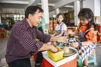 从以前公路边的手工作坊到现在集售卖、体验等多功能于一体的乡村旅游陶艺体验馆,母先才家年收入从3万元到现在的30万元。