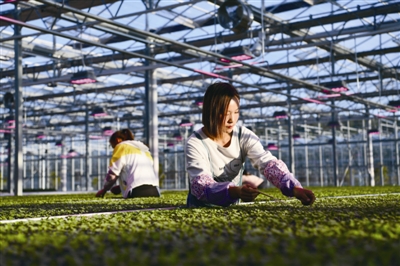 图为农民在位于威宁彝族回族苗族自治县的贵州江楠育苗中心管理蔬菜苗。杨文斌 摄