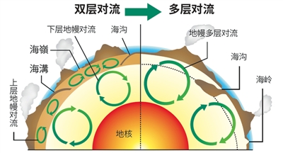 现代地质学研究表明,地球地幔最深部和最上部之间存在巨大的对流。而在早期的地球,以地下660千米附近为界限,上下分别会有对流产生。大约距今27 亿年前,地核的对流变得活跃,上下两个对流合成了一个强大的对流,使得地壳运动变得频繁并推动大陆的形成。而新大陆的增加又促使最适宜光合作用的浅海不断增加。此外,这个时期遮盖太阳风的磁场屏障已经形成。因此,科学家认为地球内部的变化和蓝藻的繁荣息息相关。