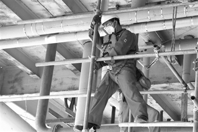 8月10日,辽东湾闷热潮湿。中海油有限公司天津分公司锦州20-2气田停产检修准备工作正紧锣密鼓铺开。本次停产检修工作涉及锦州20-2气田上下游4个油气田同步联动开展,预计施工项目达73项。目前,各项目施工作业人员、物料已准备就绪,停产检修前期准备工作正有序推进。图为作业人员正在搭设高空脚手架。欧阳建平 摄