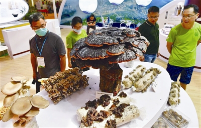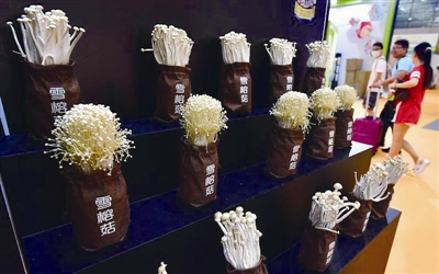 2020年9月5日,首届中国(福建)食用菌产业博览会正在福州举行,设置食用菌产品、食用菌制品、食用菌菌需物资设备及机械、食用菌科普四大展区。 视觉中国供图