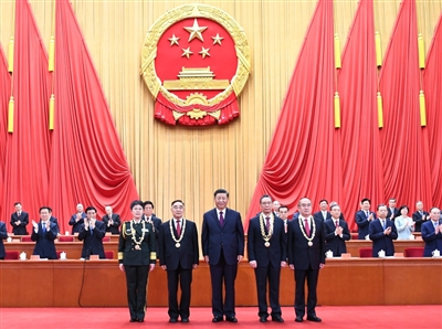 9月8日,全国抗击新冠肺炎疫情表彰大会在北京人民大会堂隆重举行。中共中央总书记、国家主席、中央军委主席习近平向“共和国勋章”获得者钟南山,“人民英雄”国家荣誉称号获得者张伯礼、张定宇、陈薇颁授勋章奖章。