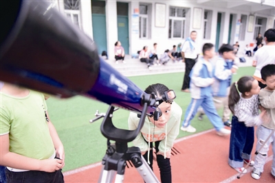 | 安徽阜阳,颍州区莲池小学举行了一场别样的赏月活动,图为孩子们架起天文望远镜观看月亮,一起过一个科普中秋节。 |