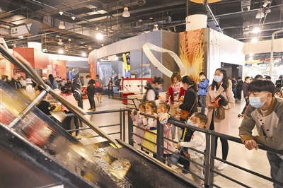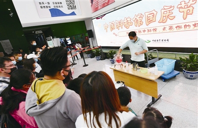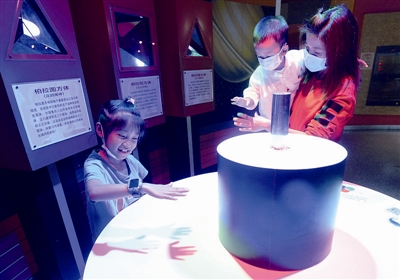 国庆长假,许多家长陪伴孩子来到科技馆,让孩子们在与科普项目的互动游戏中增长知识,快乐地度过一个有意义的假期。