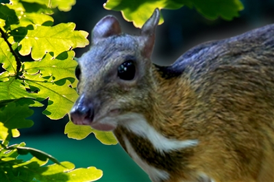 其次,头上无角不像。鹿类大凡头上均有角,而鼷鹿不管是雌性还是雄性,头上都无角。这也是鼷鹿不像鹿类的一个明显区别。