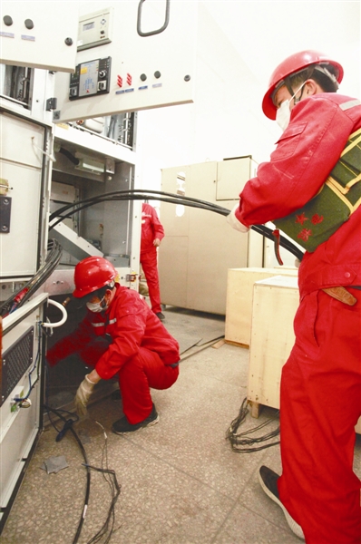 图2为施工工人将繁杂的接线全部准确无误地连接到位,考验的不仅是过硬的技术,更有严谨的作风。