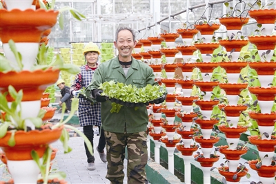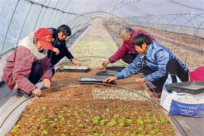 | 图为在江西抚州,村民在蔬菜大棚里栽种管护蔬菜。 |