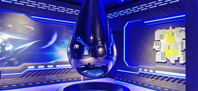 如果说“科幻先行者”展区是对以叶永烈为代表的科幻先驱的礼赞,“科幻正当年”展区则是对年青一代科幻工作者的褒奖。该展区以刘慈欣的科幻小说《三体》为蓝本,通过精选国内外艺术家插画、螳螂号捕捉水滴雕塑、深空VR场景和红岸基地等书中元素造景,多维度构建一个视觉艺术与沉浸式体验相结合的“三体”世界。策展人用“未来局宇宙”“微像宇宙”和“三体宇宙”3个小宇宙,重新诠释《三体》这部中国科幻IP的巅峰之作,希冀由此激发广大观众尤其是青少年的好奇心和探索欲。