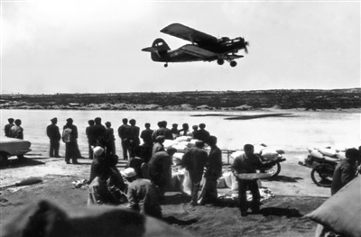 | 1982年5月,按照党中央的部署和空军党委的指示,老一代“飞播人”从西北某机场起飞,飞赴甘肃省临夏回族自治州太子山地区执行飞播任务,拉开了该大队39年飞播造林历史的序幕。(资料图片) |