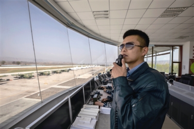 | 空军某运输搜救团一大队大队长辛嘉乘指挥飞行人员开展飞播造林训练。 刘畅 摄 |