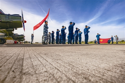 | 每次进驻飞播地区前,该团都会为一大队官兵举行隆重的出征仪式。 刘畅 摄 |