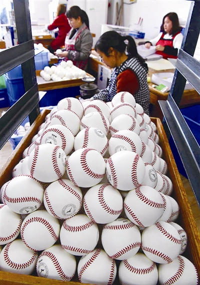 春节假期过后,位于福建省连城县庙前台商投资工业集中区的多家台资棒球系列用品生产企业里,工人们忙于赶工生产棒球系列产品。据介绍,连城县由台商主导投资的棒球产业发展迅速,产业链较为完整。该县已成为中国最大的棒球系列运动用品生产基地。视觉中国供图