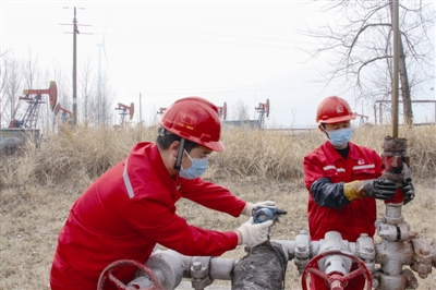 | “作为新时代的石化采油工人,我们敢闯敢干勇往直前,坚守在岗位,奋斗在岗位,努力确保原油生产安全平稳。” 图为2月12日大年初一,河南油田采油二厂井楼采油管理区员工韩崇(左)在楼J2110井进行信息化系统维护。 崔洪武 摄 |