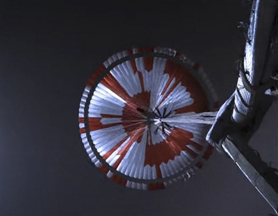 | 2月22日,美国国家航空航天局(NASA)公布“毅力”号火星车降落时的第一视角视频画面。视觉中国供图 |