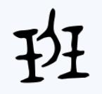 如果我们知道“班”这个字的本义,就很容易理解了。“班”的金文由“玨”和“刀”组成,“玨”就是玉珏,是一种瑞玉。“班”就是用刀把玉珏分成两半,作为信物。所以“班”有分开的意思。