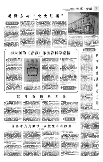 在北大图书馆的阅览室里,毛泽东相继认真阅读、研究了当时各种进步的社会科学,首先包括李大钊《布尔什维主义的胜利》等早期传播马克思主义的论文。1918年11月,毛泽东在天安门广场,又亲耳聆听了李大钊的著名演讲——《庶民的胜利》。这些阅历,使青年毛泽东开始具体地接触、了解俄国“十月革命”和 “国际共运”传播到中国的马克思主义。毛泽东说:“这时,也只是在这时,中国人从思想到生活,才出现了一个崭新的时期。”