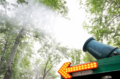 北京市园林绿化局科技处高级工程师张博介绍说,飞絮高峰期,将打出“洒、喷、冲、扫”组合拳进行治理。每天的10点到16点是果絮开裂集中时段,各区将对飞絮情况严重的杨柳树和林地绿地中滞留飞絮,及时进行高压喷水、喷雾,对硬化路面及时进行湿化和清扫。每天早晚高峰前,将及时对积存飞絮进行湿化和清扫,以降低飞絮对市民出行的影响。