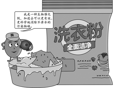 转基因在工业方面也广泛应用。我们现在用得最多的洗衣粉里面通常都会加一种酶进去。酶是一种生物催化剂,加进去后可以更有效、更科学地消除不亲水的污染物。衣服穿脏了有两方面因素,一是外面粘上了脏东西,二是里面的脏东西,包括人体分泌的汗或者脱落的细胞,其主要的成分是蛋白质和脂肪,粘上去以后不容易洗下来。如果用普通洗衣粉来洗,需要水温比较高、洗衣机转动非常快速才能把它震下来或者洗脱下来。但是我们加蛋白酶进去就可以把蛋白质分解掉,加脂肪酶就能把脂肪分解掉,加淀粉酶就可以把淀粉分解掉。