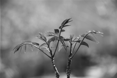 在童年记忆中,老家灶房南边、紧挨西院墙的一隅,长有一棵茶碗粗细的香椿树。阳春三月,枝头之上冒出许多米粒大小的嫩芽,有风有雨有阳光,嫩芽长得很快,一天一个样。每当我闹饭的时候,母亲常指着那棵香椿树,哄我说,刚啊,听话,等过几天,香椿芽长成了,给你炒鸡蛋吃!对于肚子里没有多少油水的农家娃来说,香椿芽炒鸡蛋的馥郁浓香,是难以抗拒的巨大诱惑。打蛇打七寸,母亲深谙我馋嘴贪吃的习性,随便许诺一件事,只要与吃有关,总能让我乖乖就范。每天放学回家走进院子,我就慌忙跑到香椿树下,伸长脖子使劲瞅,看看香椿芽是不是长成了。