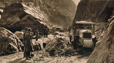 这是一次名副其实的冒险,既是对人类自身潜能的最大挑战,也充分展现了令人惊讶的汽车性能。“帕米尔组”被分成3个分队,离开斯里那加的大本营,其中一个分队驾驶履带汽车于7月份翻越了海拔3590米的拉奇干山口和4200米的布尔奇山口,山上终年不化的冰雪厚达6米。之后的阿斯托尔河谷又是急速下坡路段,为了防止侧滑,队员们用绳子拉着汽车;沿途的木结构桥梁都不坚固,人们站在很远的岸上用长长的绳索将空车拉过桥;借用悬崖侧面比履带车轮距更窄的栈道前进;如果有巨石堵塞了道路,还要动用炸药清除;遇到雪崩和塌方,他们将汽车拆解成单个的零件,手抬肩扛过去,重新组装。有时8个小时才前进18公里。