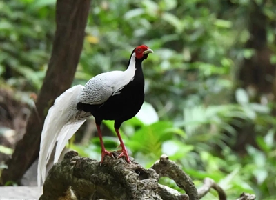 在如今的鼎湖山自然保护区内,由于极少有闯入者惊扰,白鹇每日都会“拖家带口”穿行林中,有时还会大胆走出马路,向人们“炫耀”其美丽的身姿。