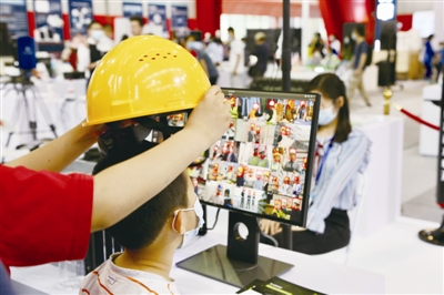 | 图为小朋友在体验AI识别系统。 |