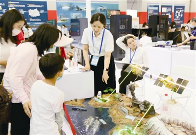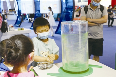 | 图为小朋友在做体验科普。 |