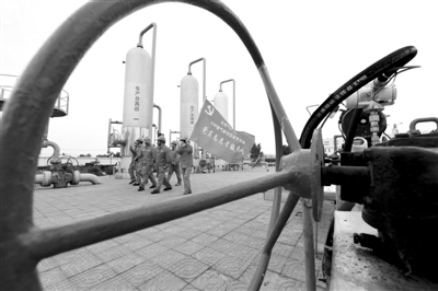 中国石化中原油田天然气产销厂党委,扎实开展“党旗在基层一线高高飘扬”系列活动,充分发挥党支部战斗堡垒和党员先锋模范作用。5月20日,天然气产销厂文96储气库项目部党支部,组织党员集中开展注采流程检测和现场验漏工作。赵奕松 范永光 摄